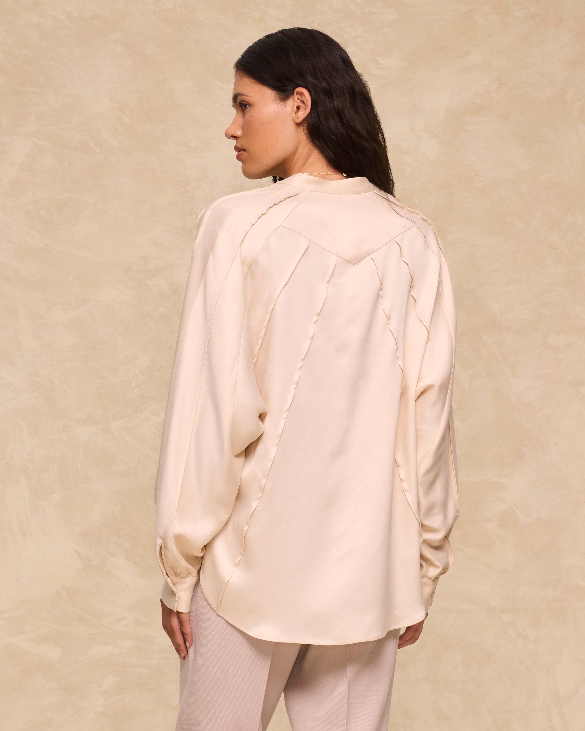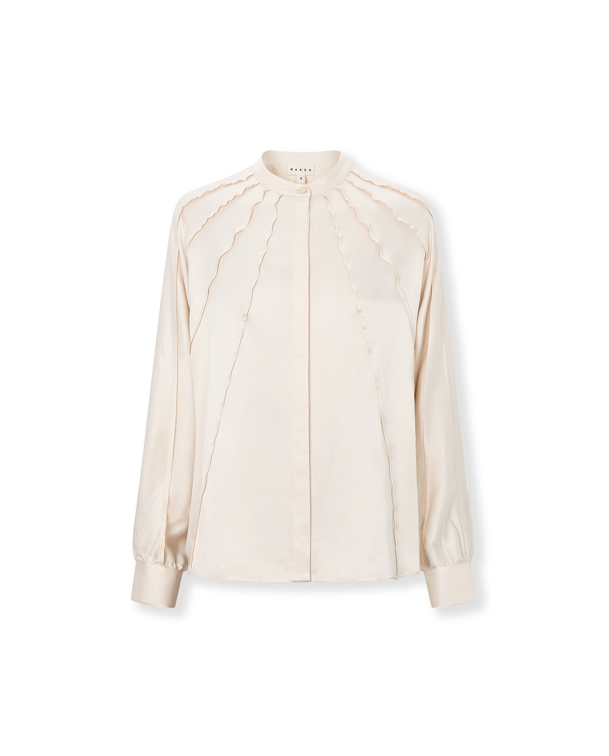 ERICA | Dikiş Detaylı Ekru Saten Bluz