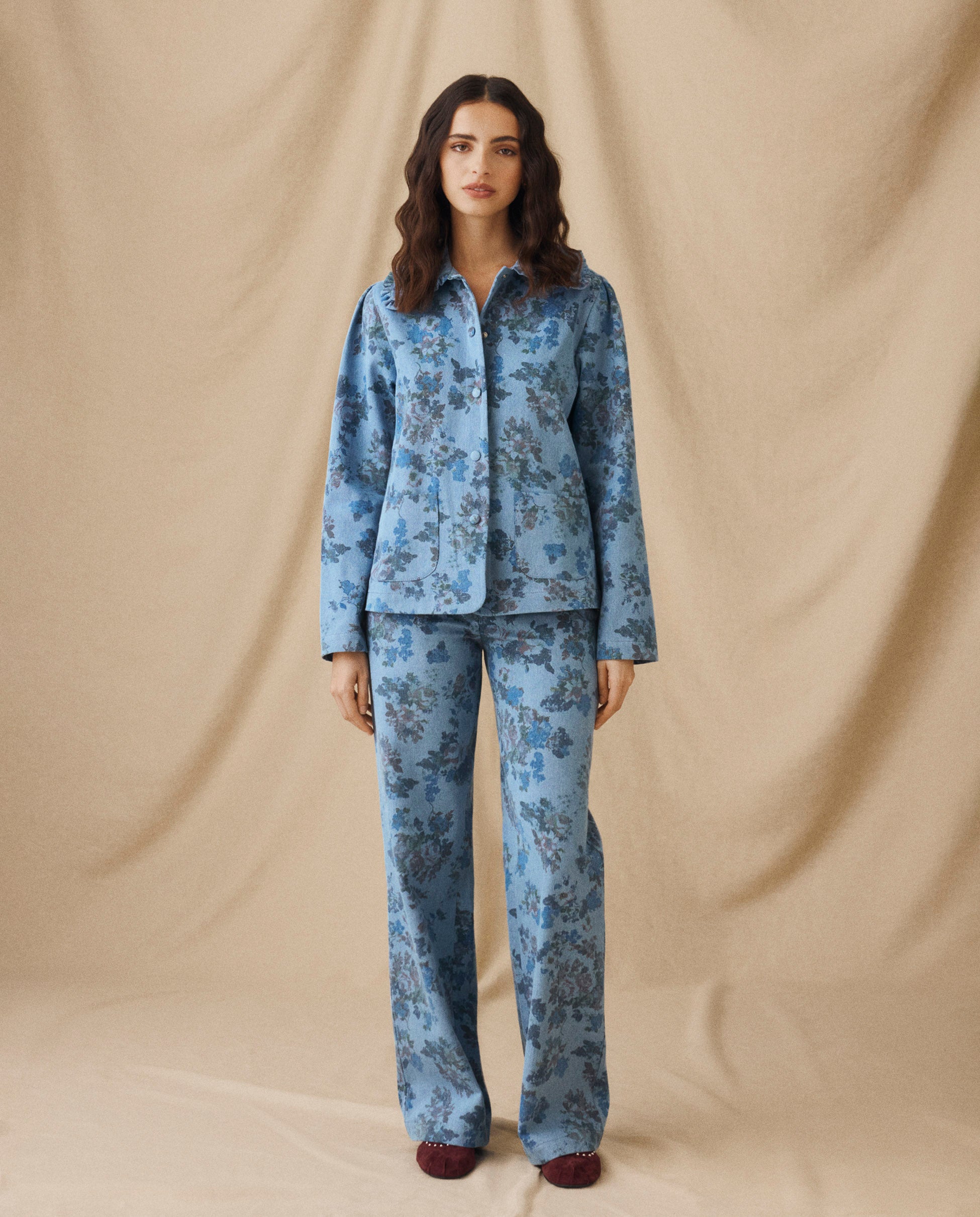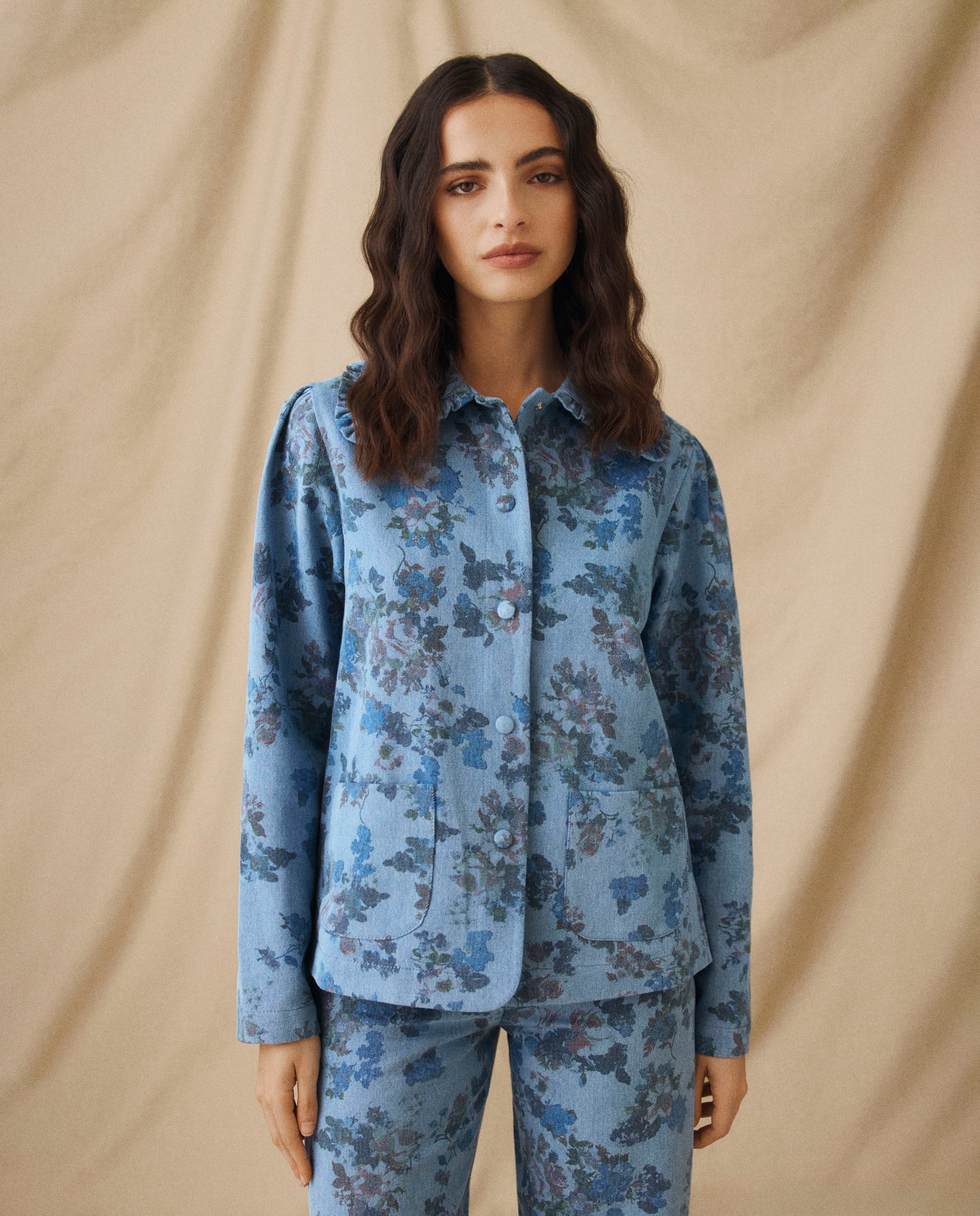 CONNIE | Mavi Çiçek Desenli Pamuk Ceket