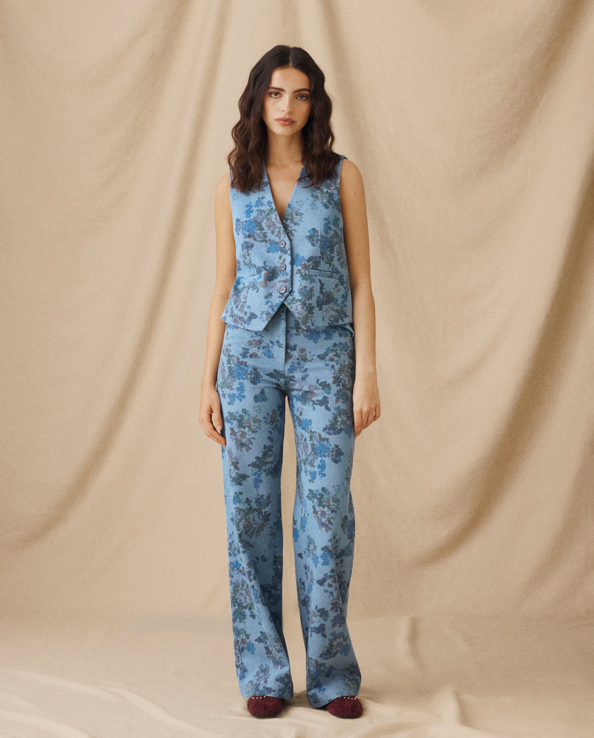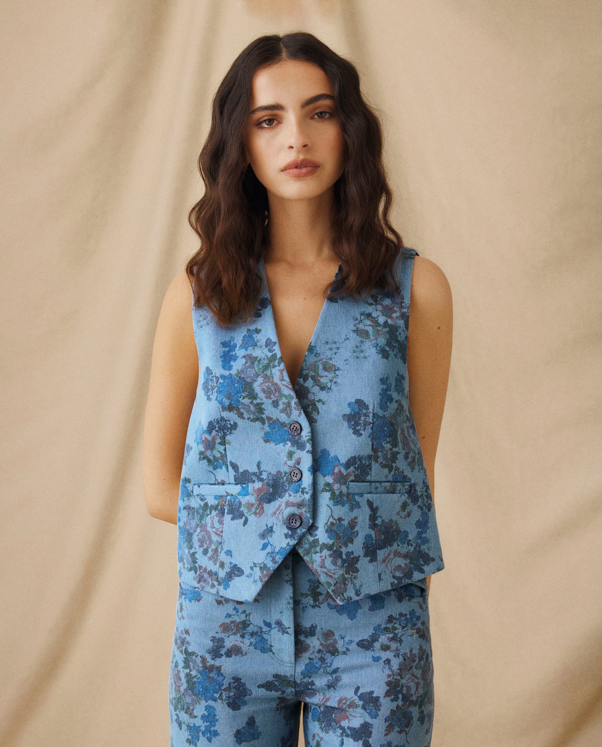 CONNIE | Mavi Çiçek Desenli Pamuk Yelek