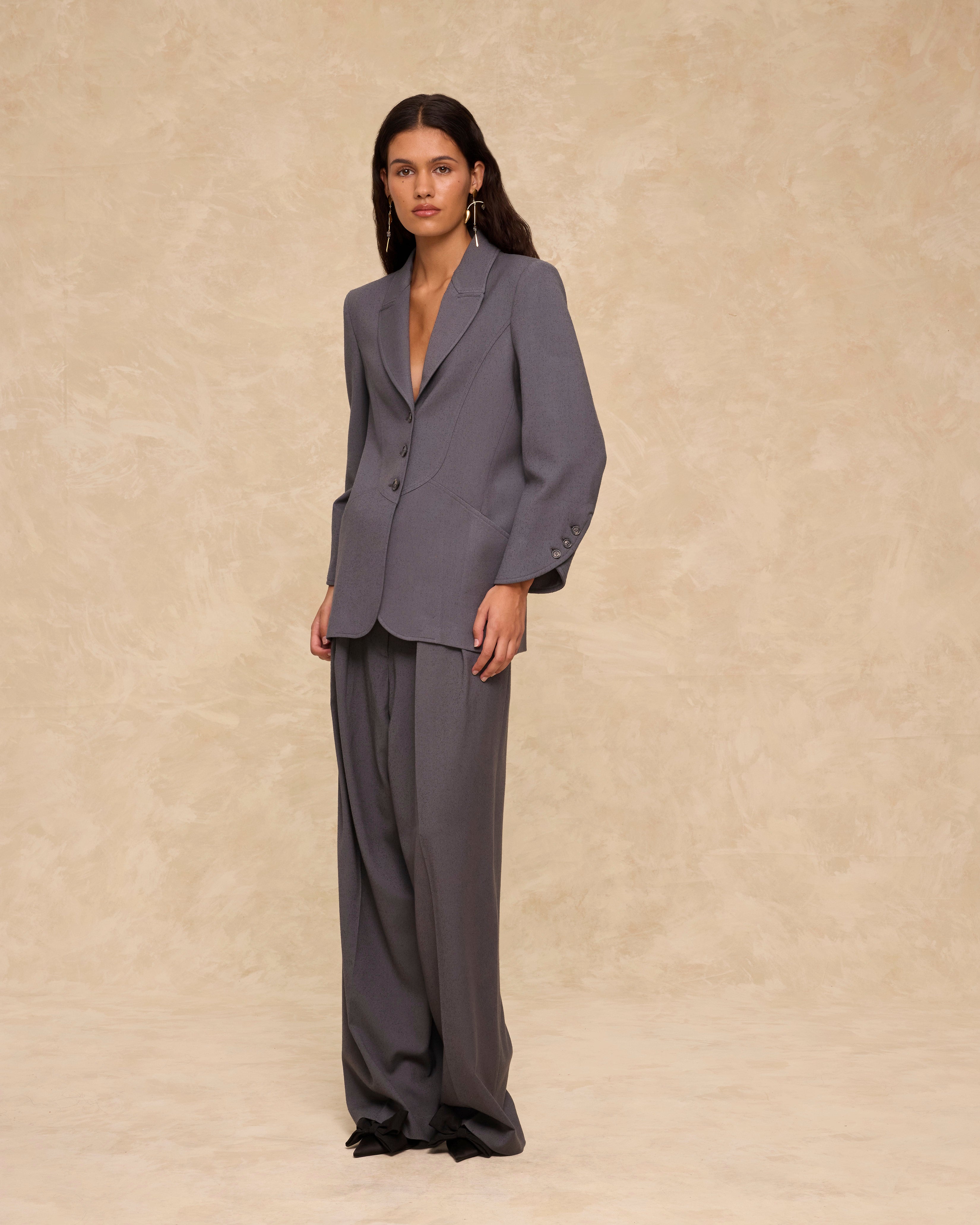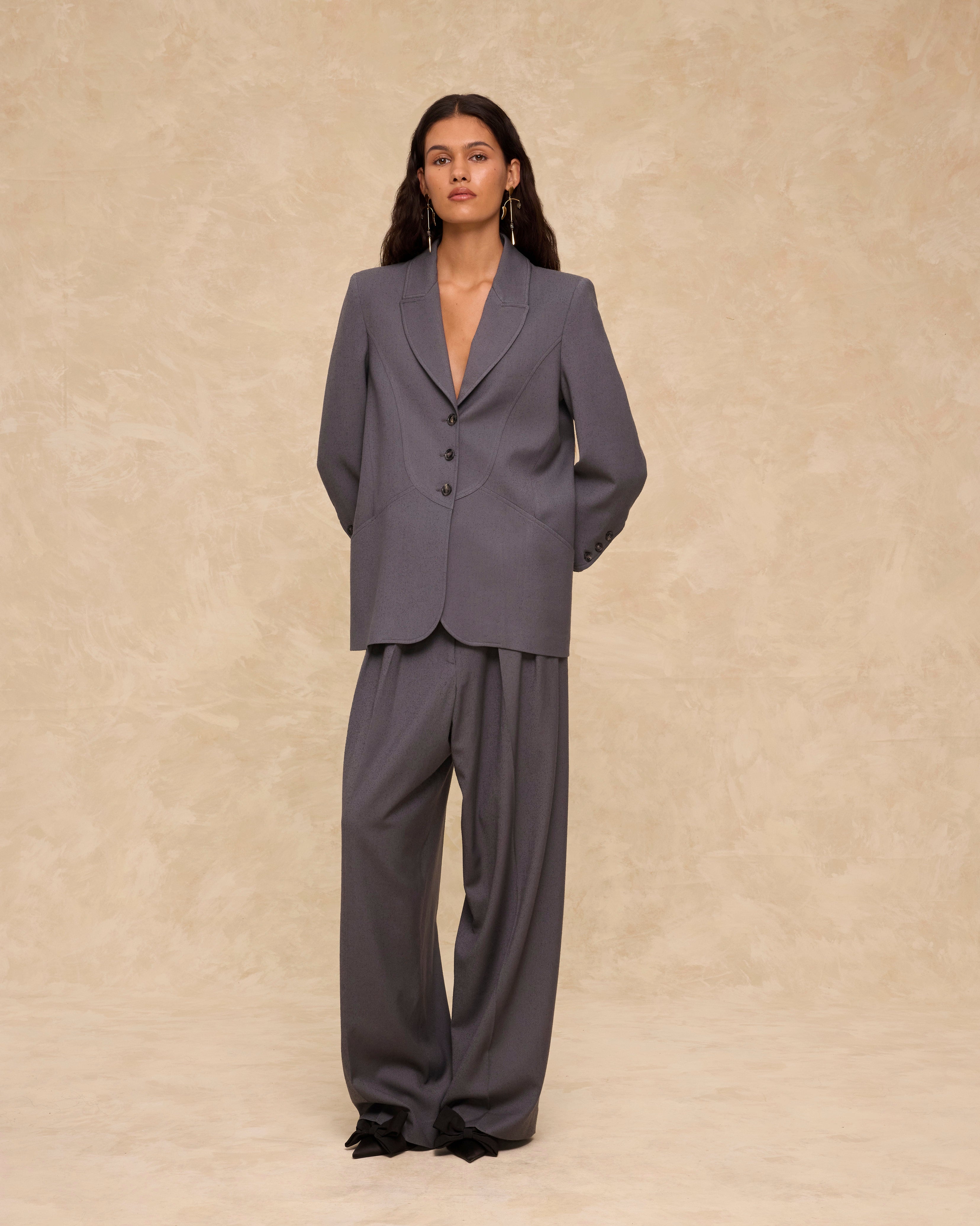 GIOVANA | Blazer Estructurado en Mezcla de Lana Gris Oscuro