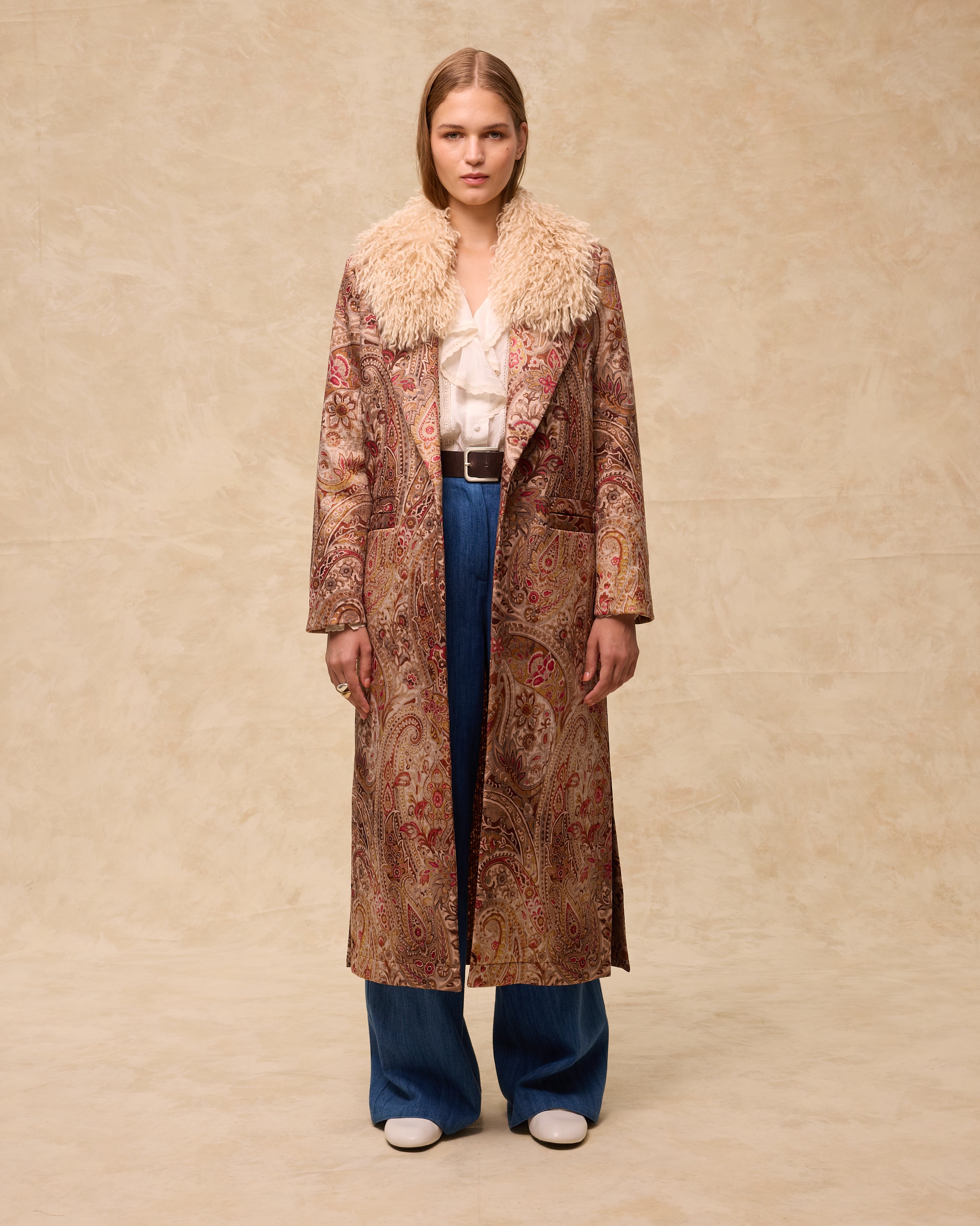 ERICA | Kürklü Yaka Detaylı Jakarlı Uzun Kaban