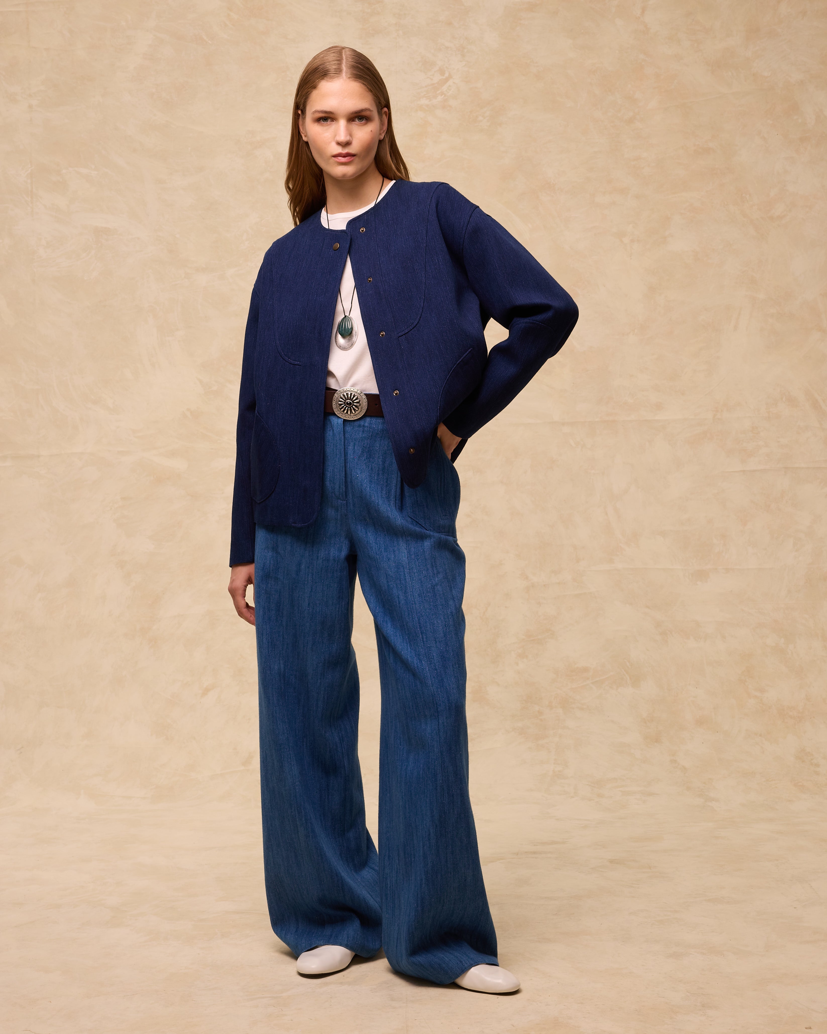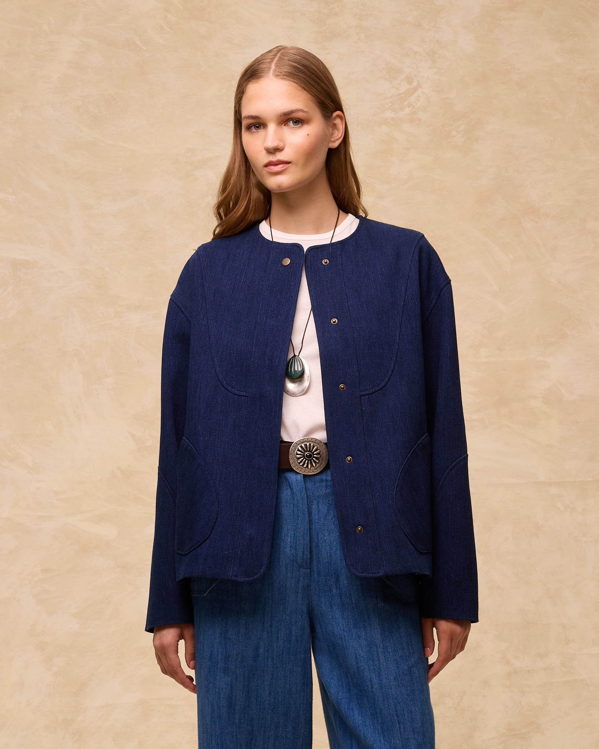 ANIKA | Açık Mavi Pamuk-Keten Ceket