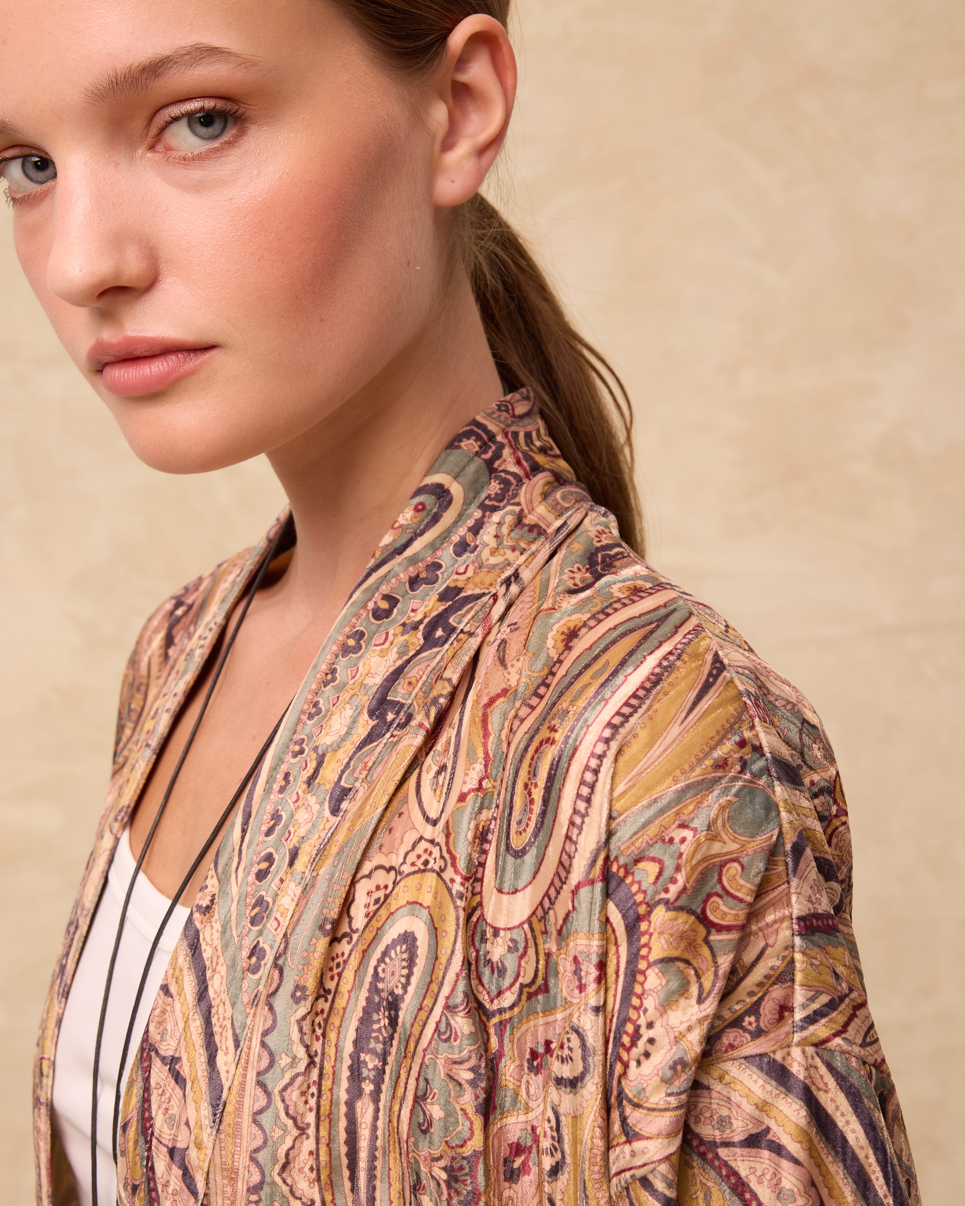 AURA | Altın Paisley Desenli Jakarlı Kimono