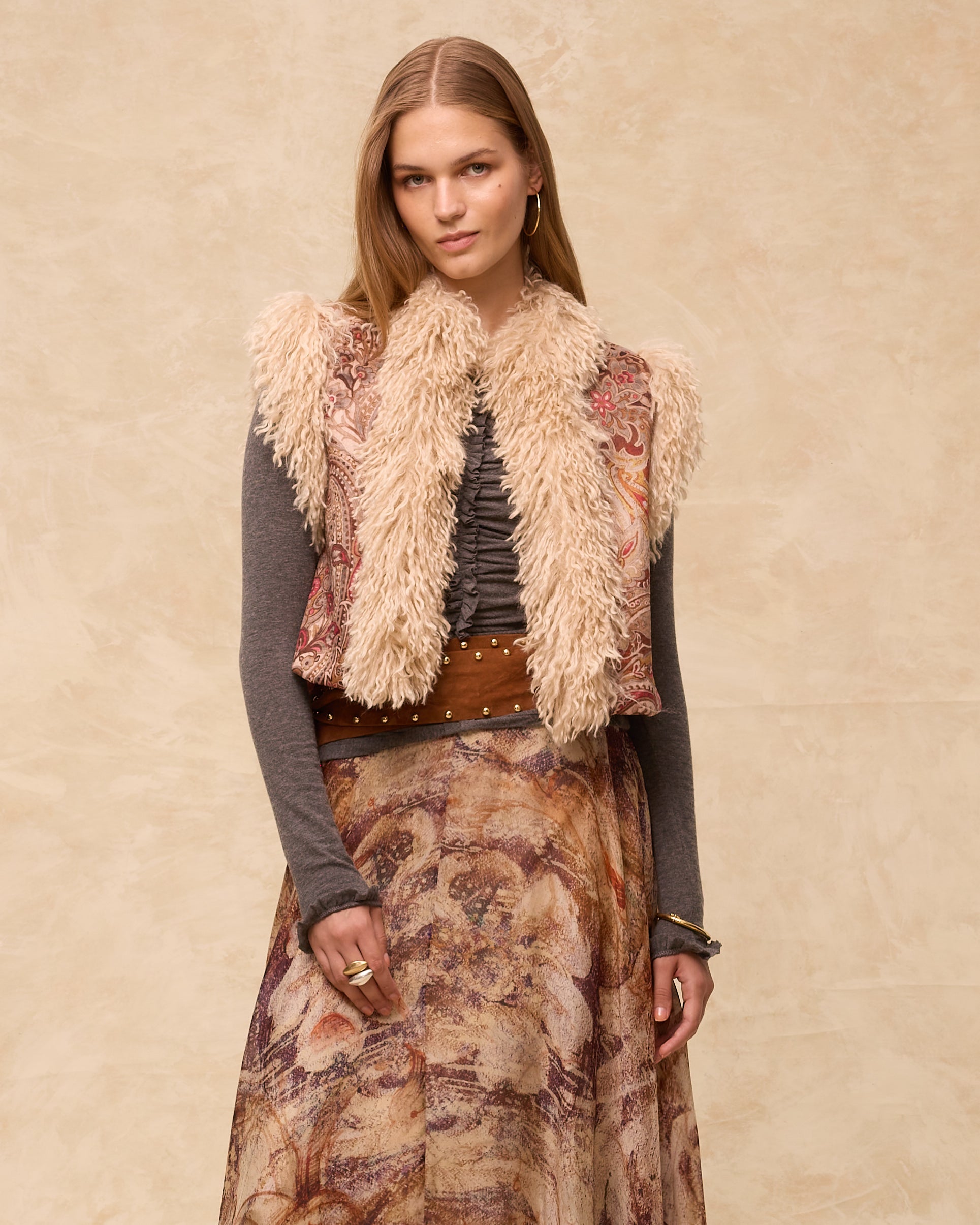 ERICA | Kürklü Yaka Detaylı Jakarlı Kısa Yelek
