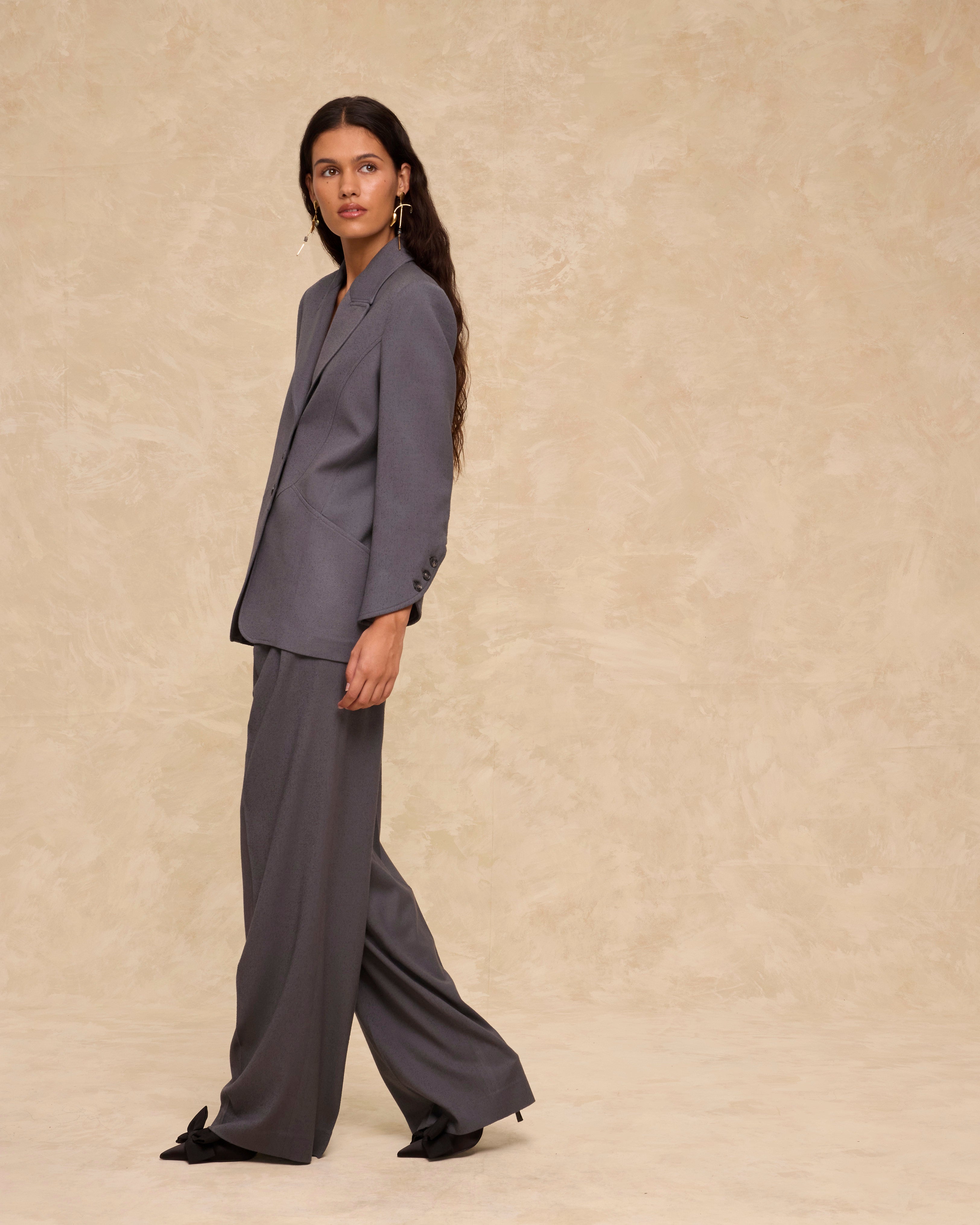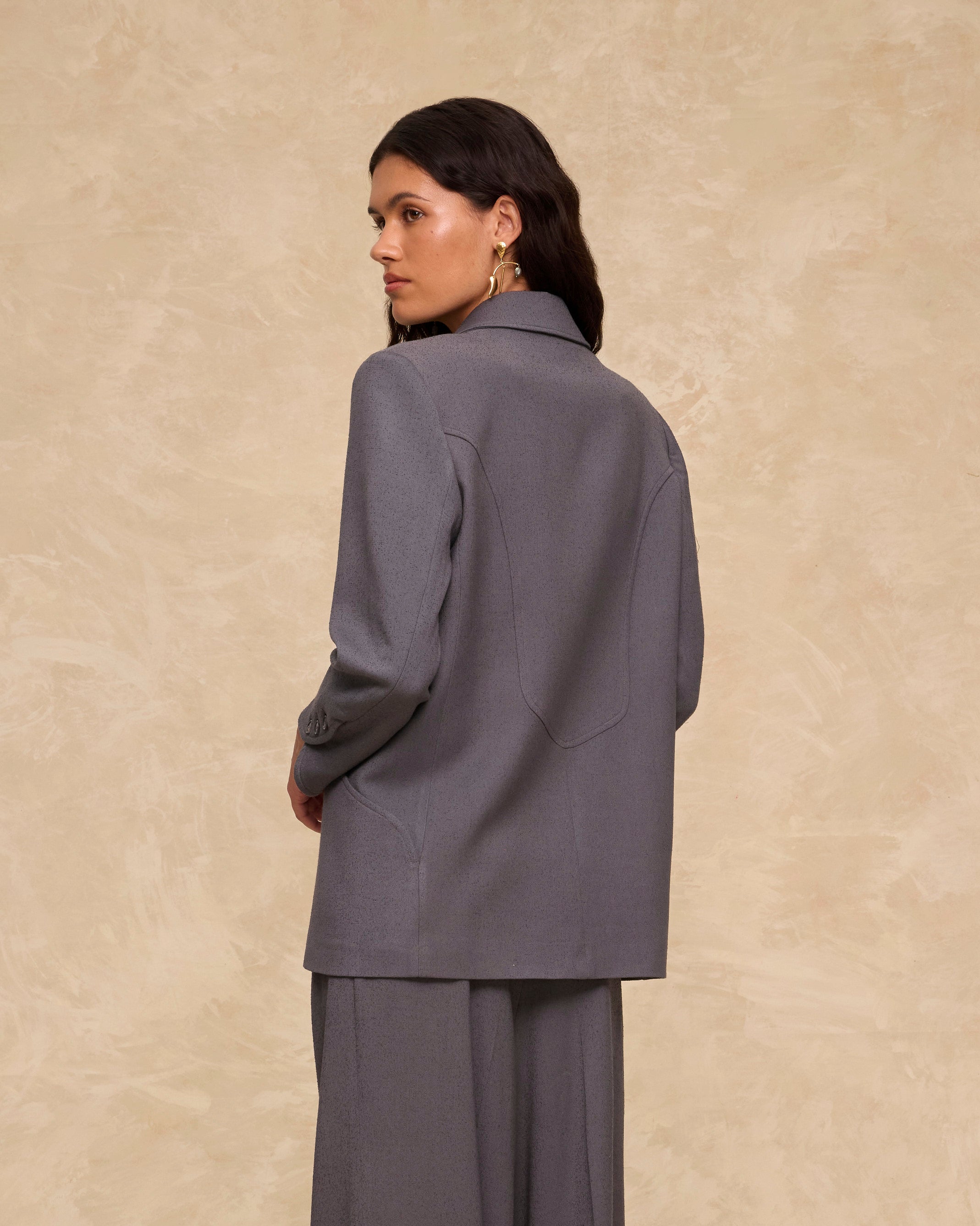 GIOVANA | Blazer Estructurado en Mezcla de Lana Gris Oscuro