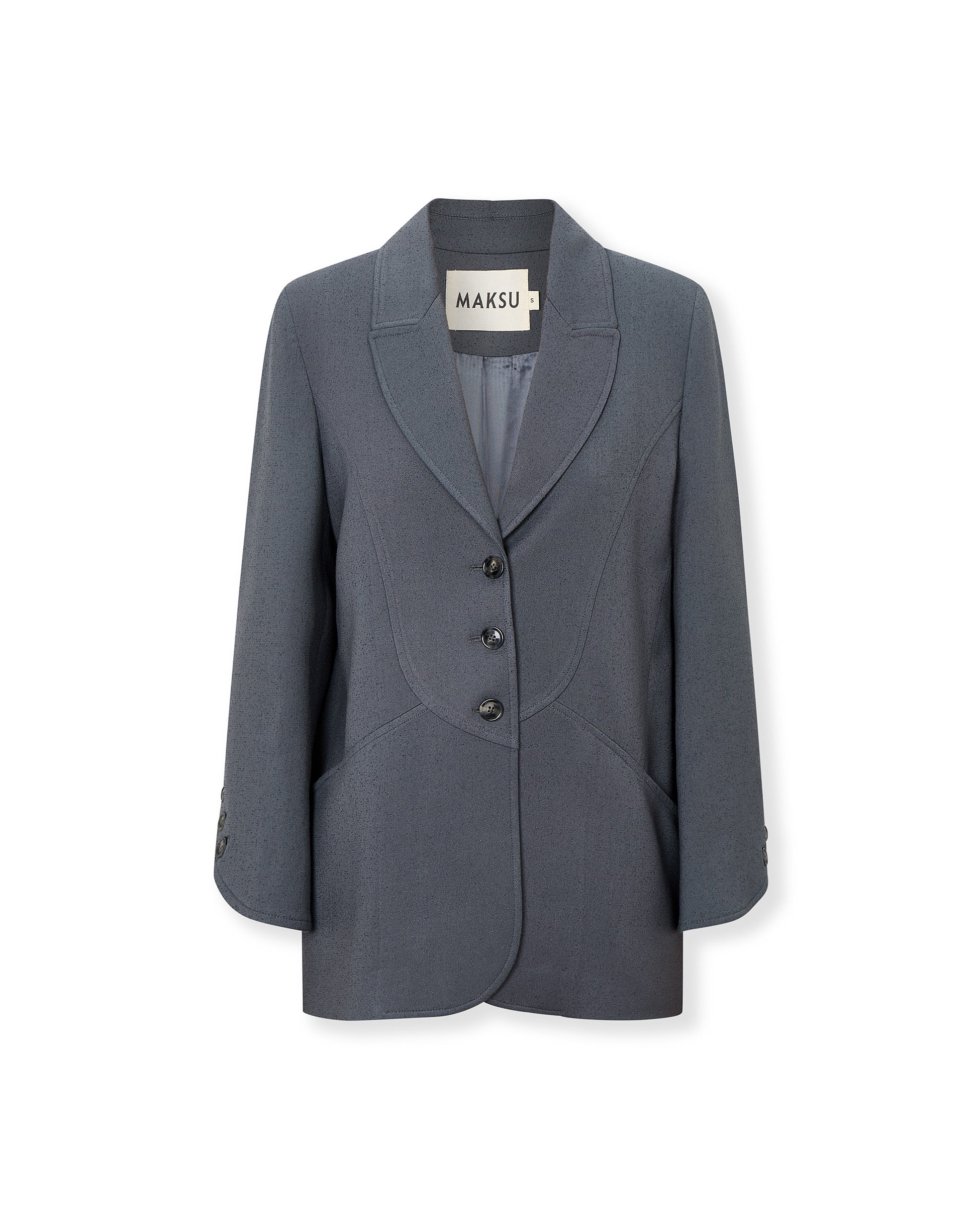 Where elegance meets minimalism, the Giovana blazer is defined by soft architectural lines and refined tailoring. Cut from a light wool blend in deep grey, it features sculpted seams, a sharp lapel collar and tonal buttons through the front. The longline silhouette is finished with discreet side pockets, curved cuffs and matching button details at the wrists. • Sculpted tailoring in a structured wool-blend • Tonal button fastening with curved cuffs and buttoned wrists • Side pockets and curved front hem for a modern finish