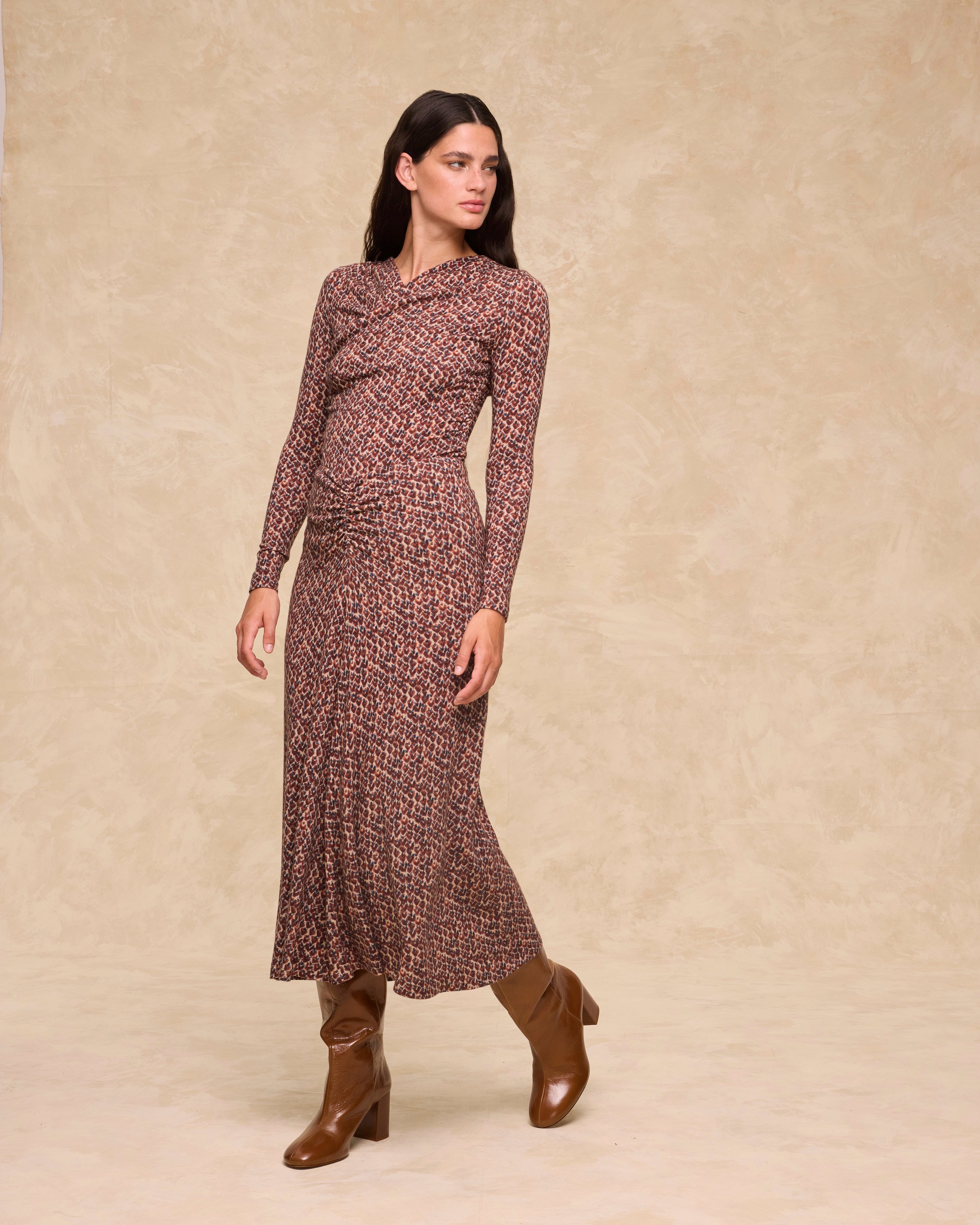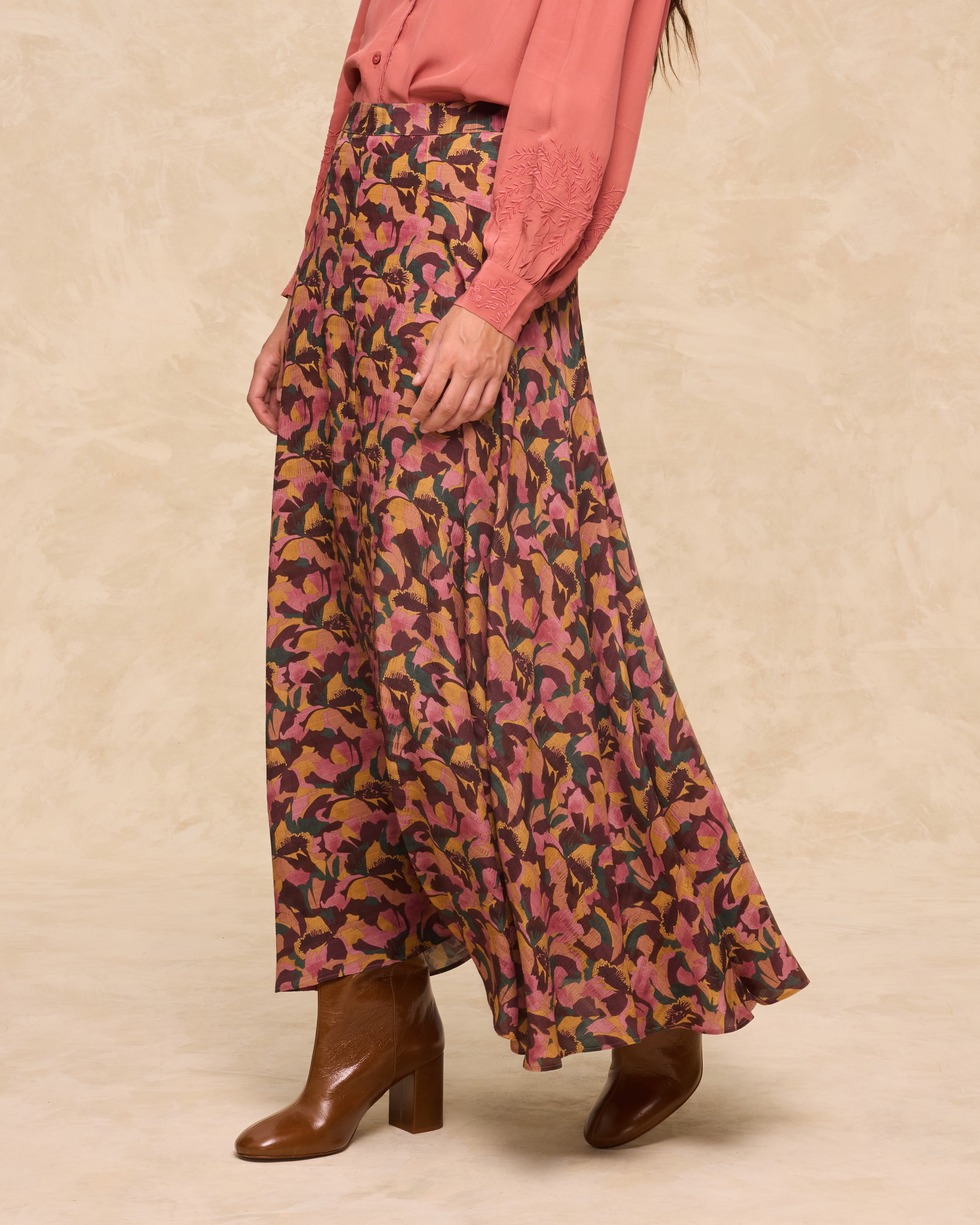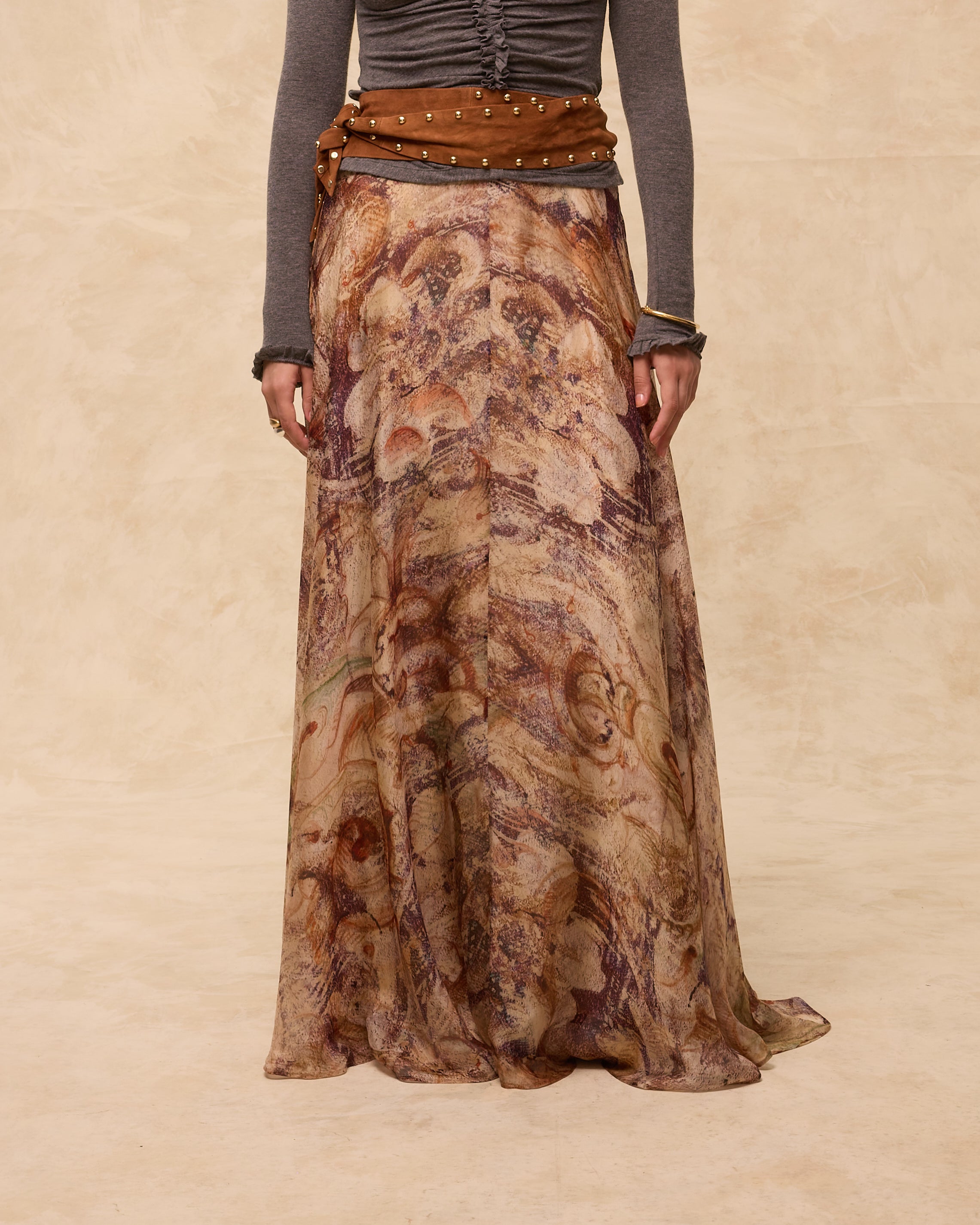 MARSIGLIA | Bej Çok Renkli Desenli Kloş Etek