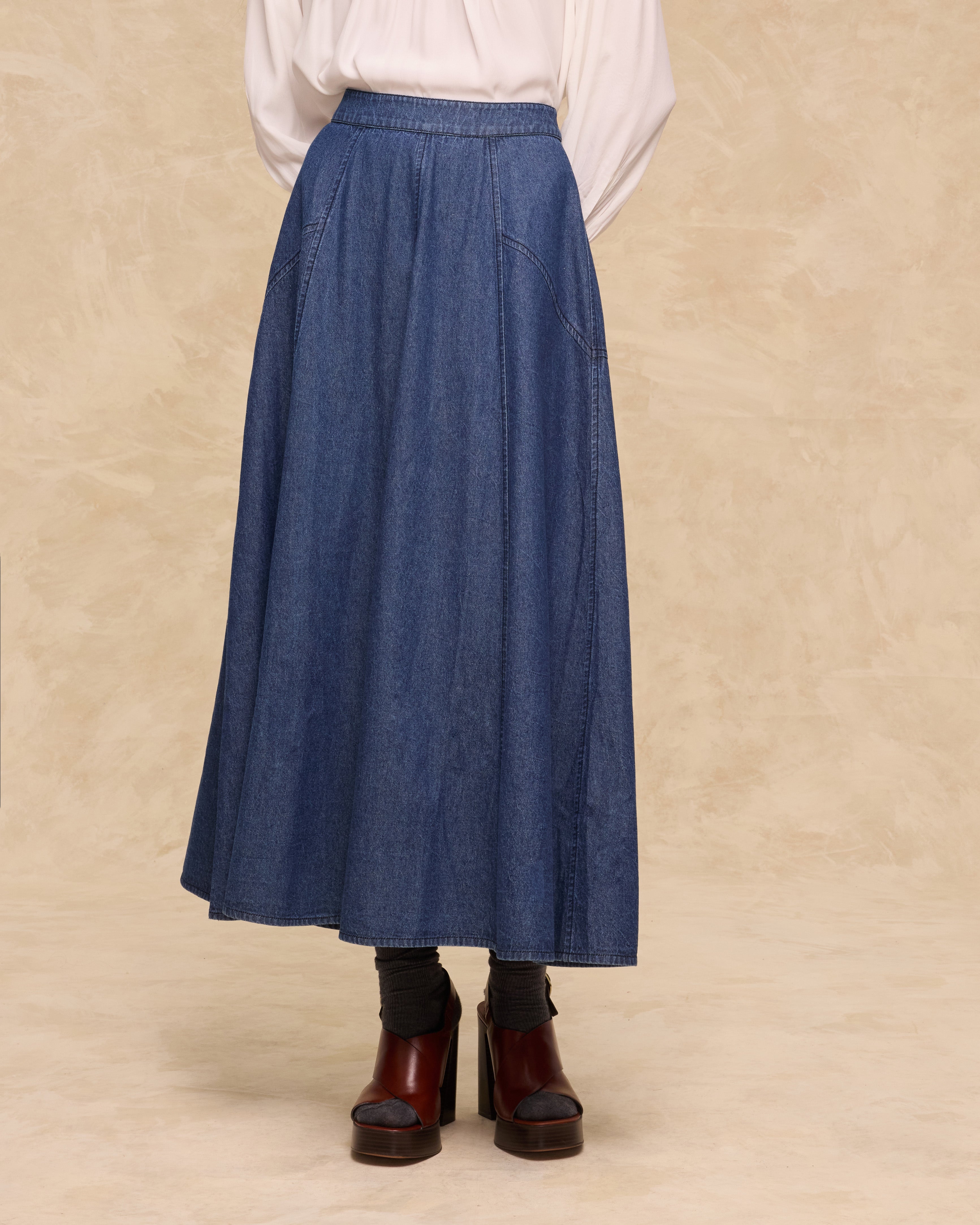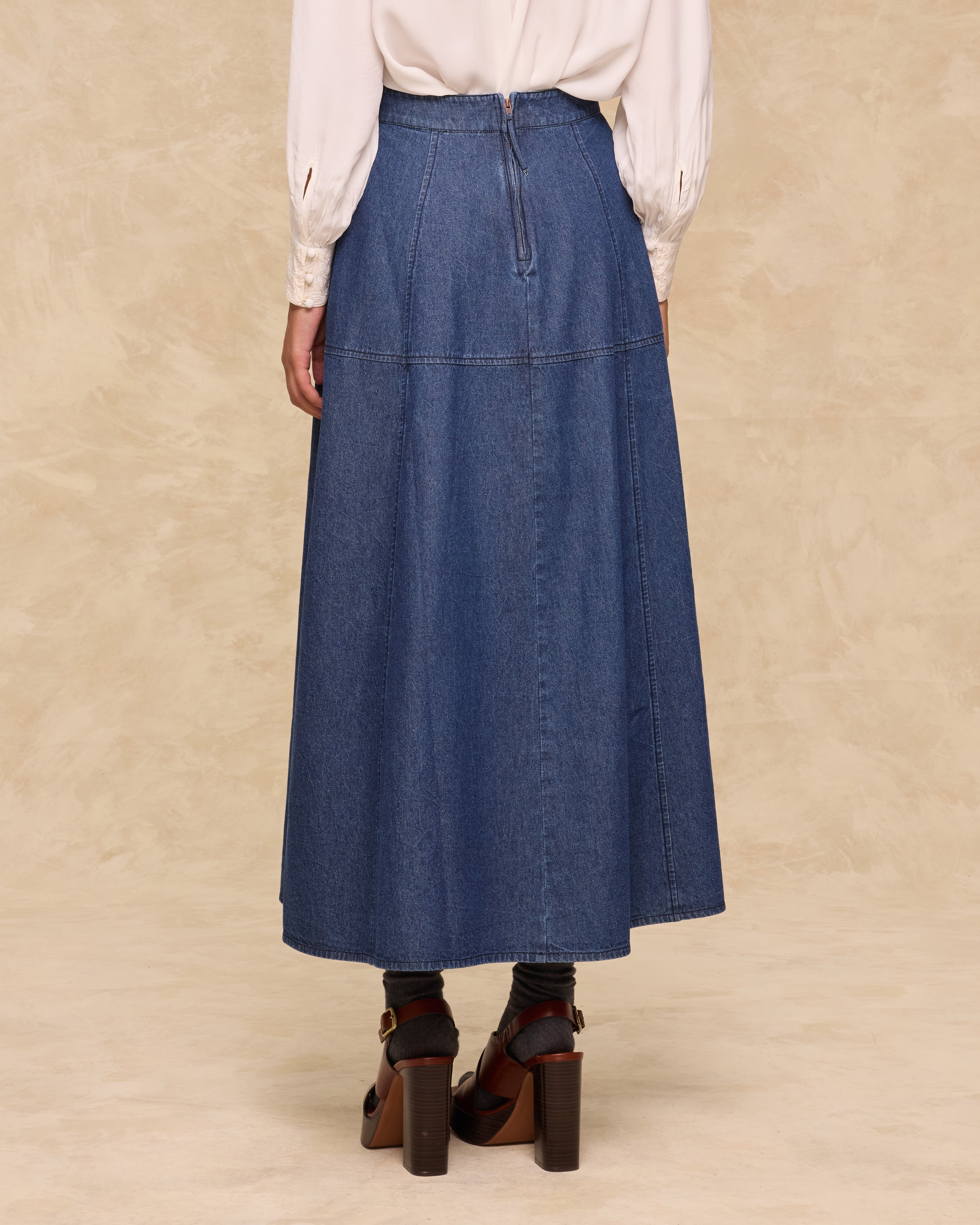 NATALIA | Çelik Tonunda Saten Midi Etek