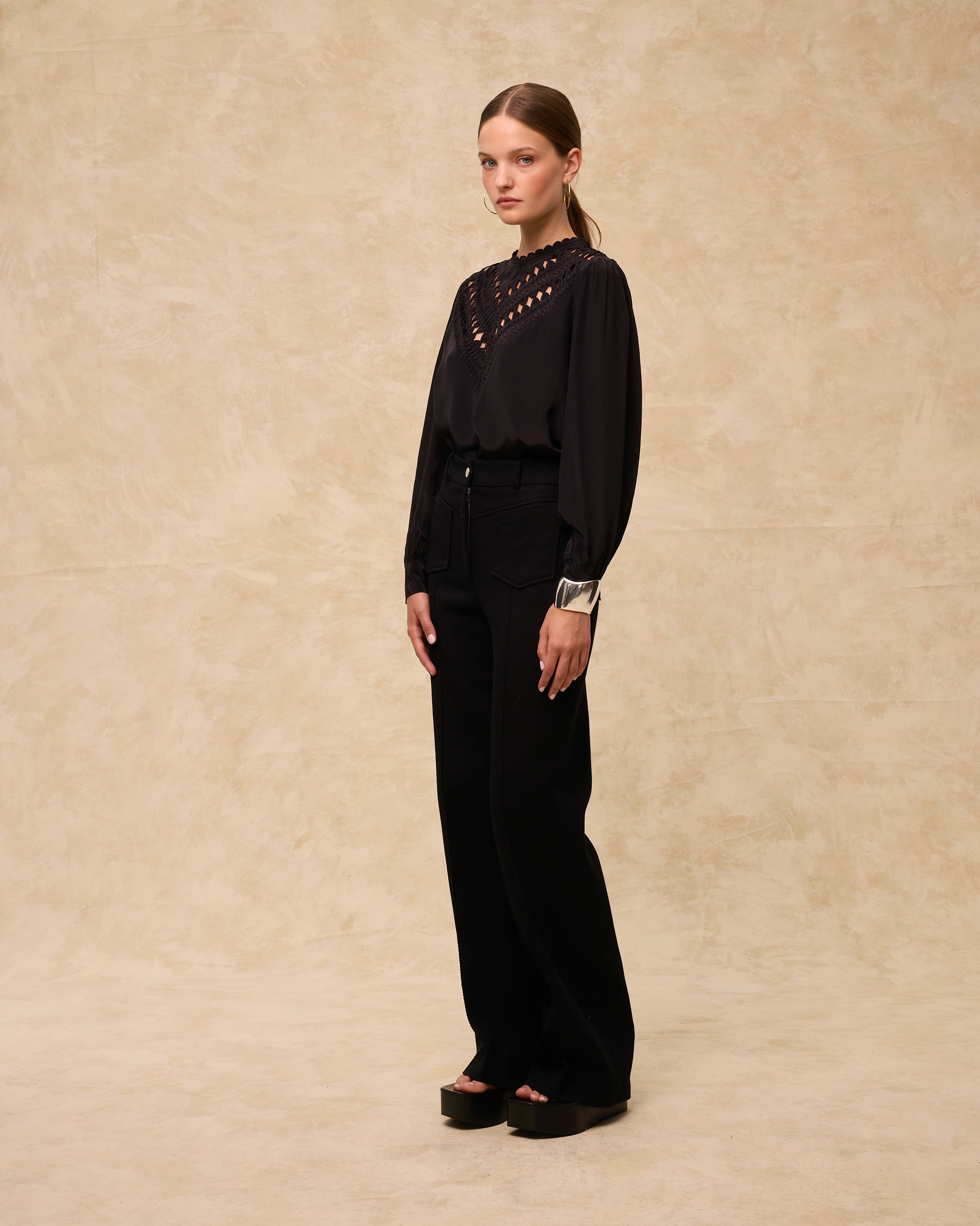 PAOLA | Siyah Yapılandırılmış Kumaş Pantolon