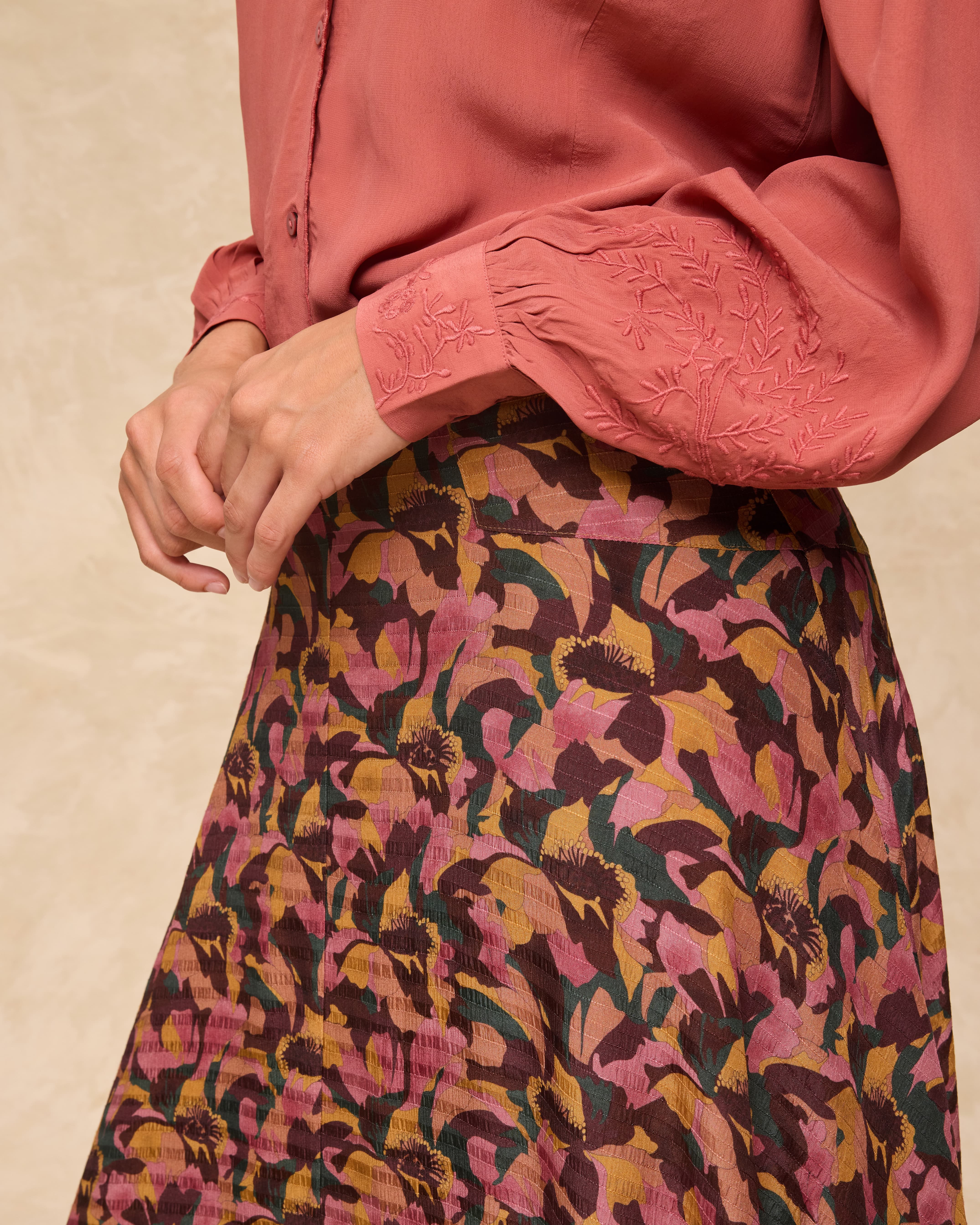 • Sıcak ve uyumlu tonlarda çiçek deseni
