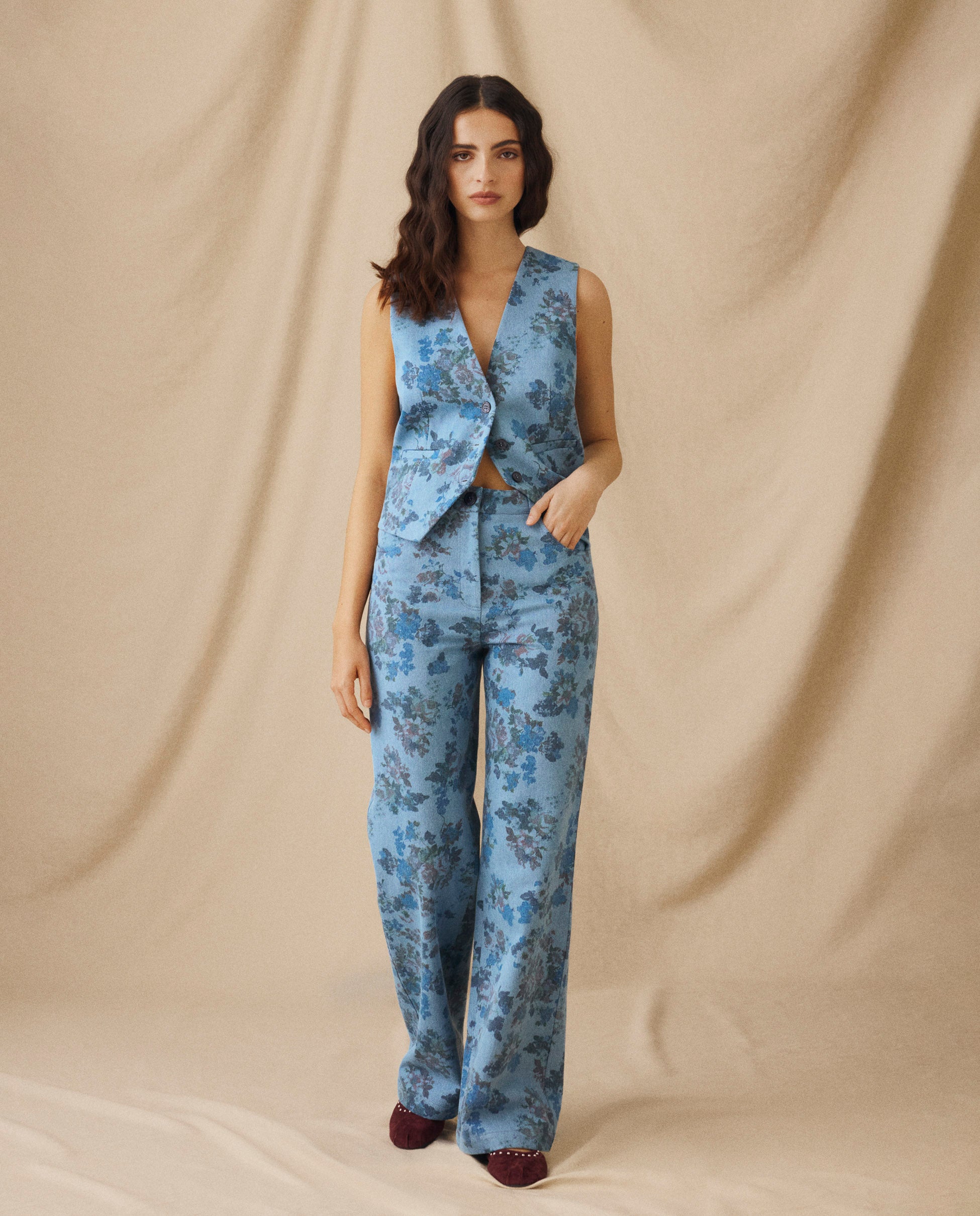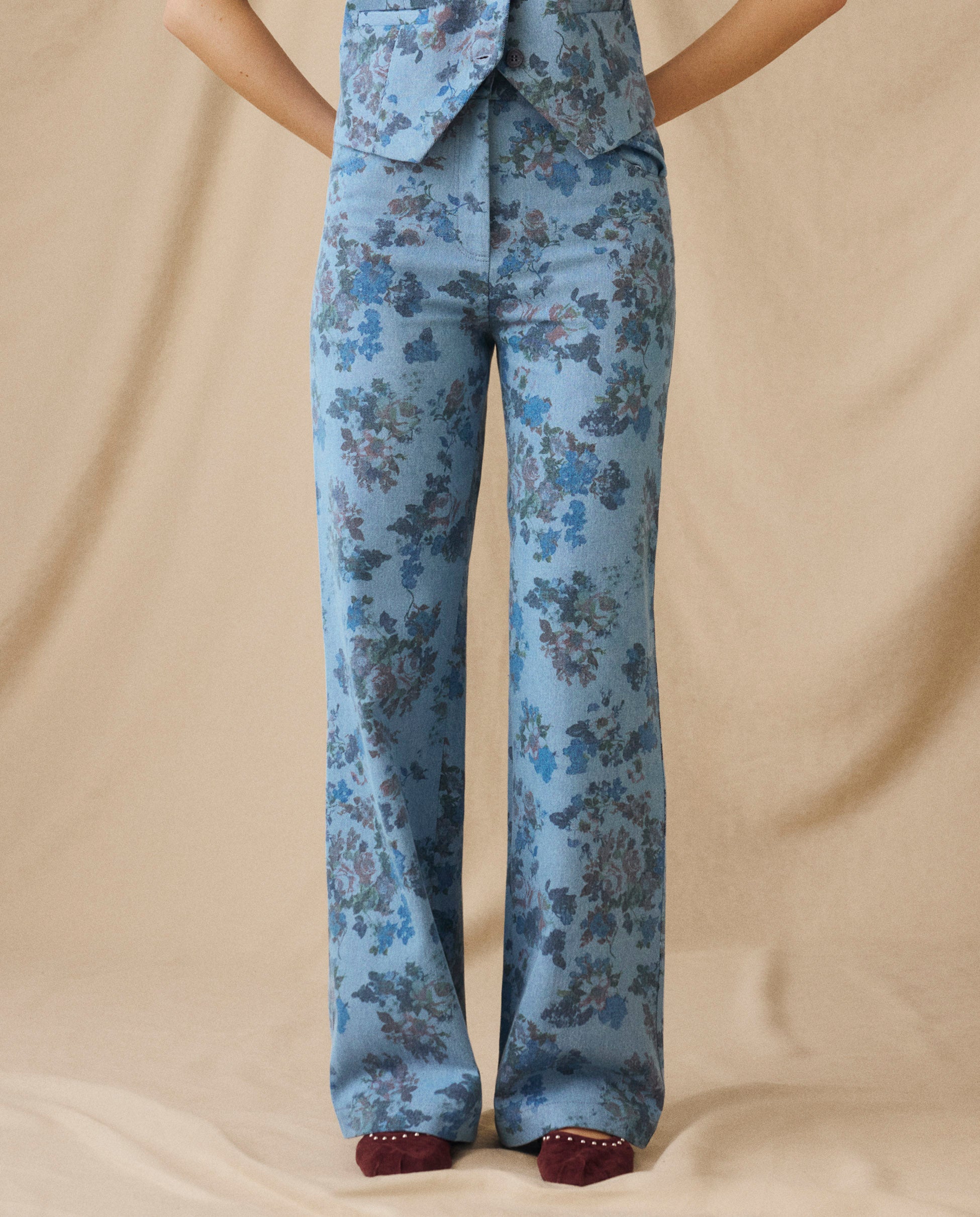 CONNIE | Mavi Çiçek Desenli Pamuk Pantolon