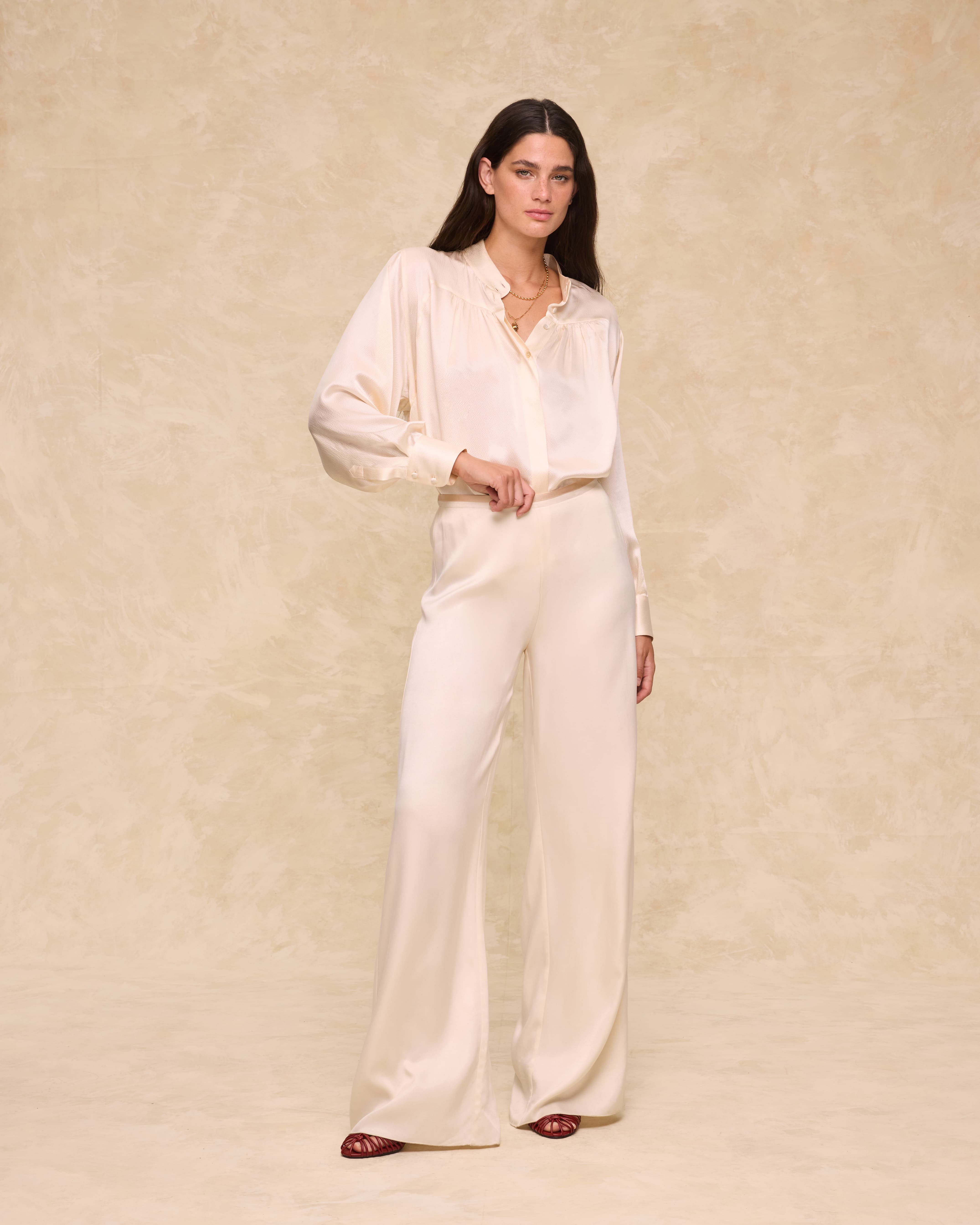 ERICA | Dikiş Detaylı Ekru Saten Bluz