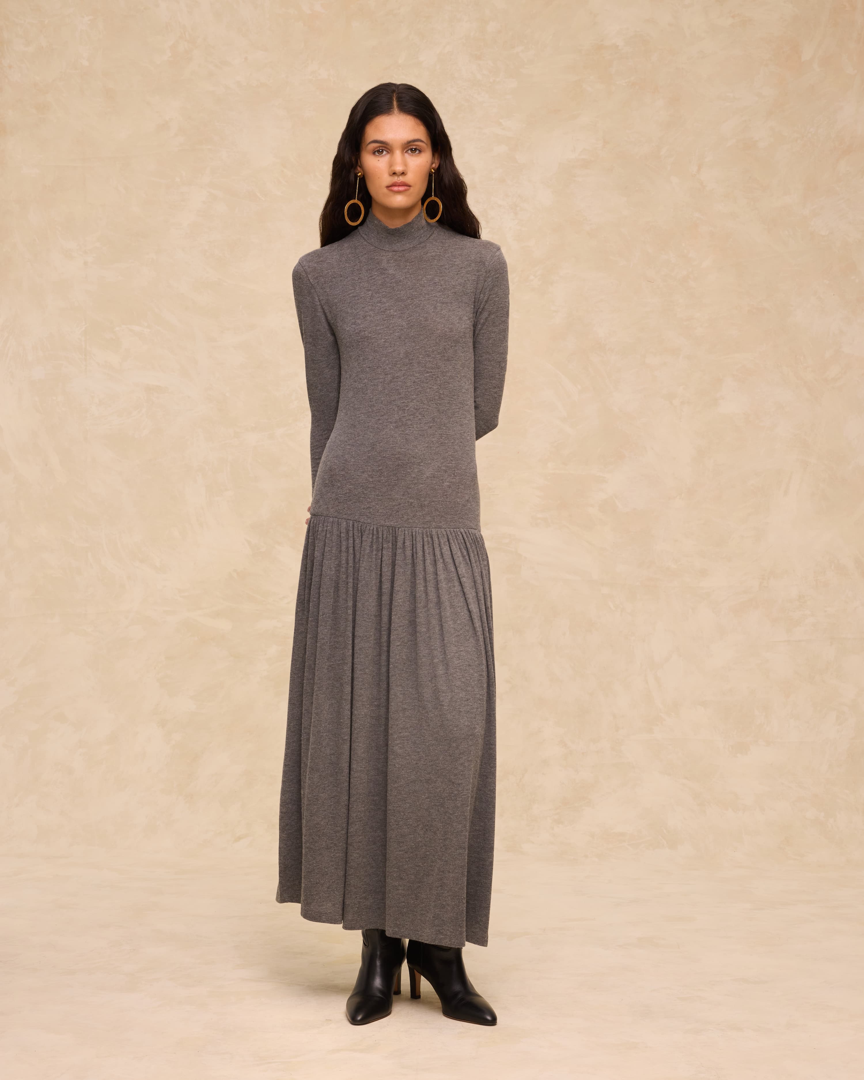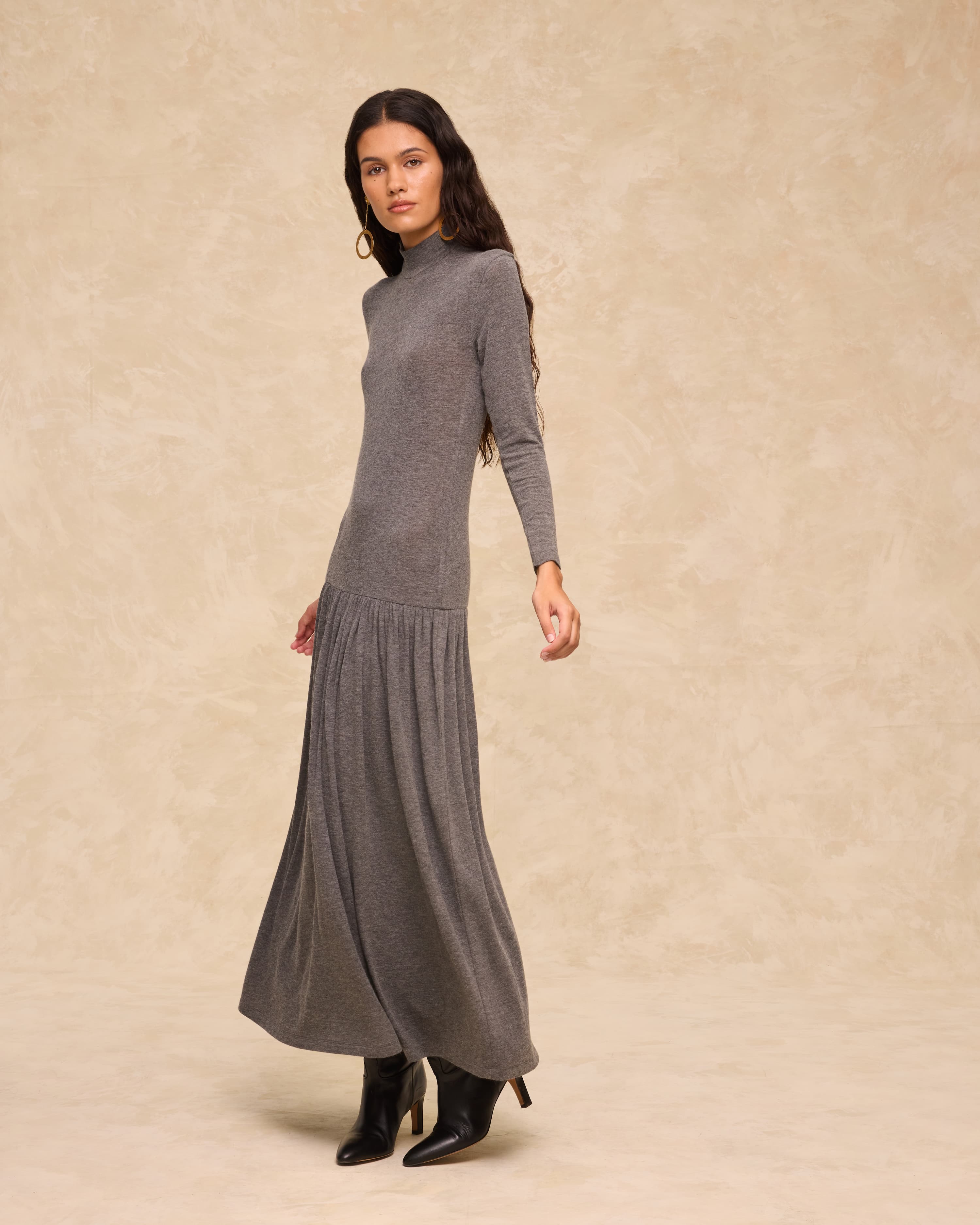 BOBY | Gri Uzun Triko Elbise Yüksek Yaka Detaylı