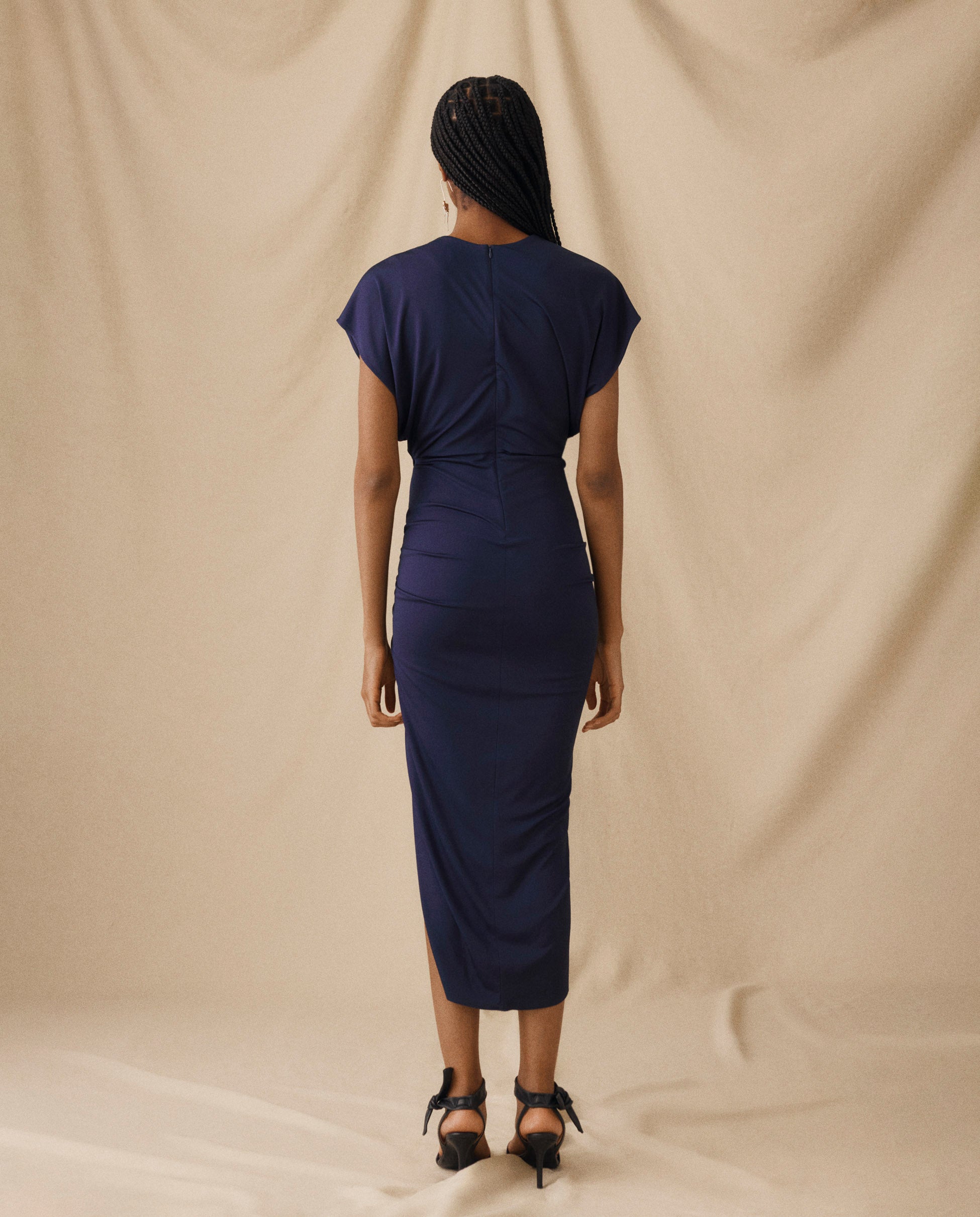MICHAELA | Lacivert Drapeli Midi Elbise